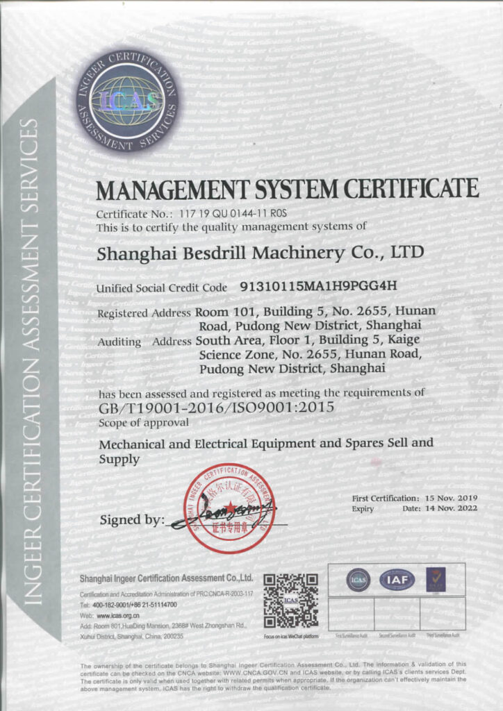 Компания Shanghai Besdrill Machinery Co., Ltd. была основана в 2006 году. Это современная и диверсифицированная компания, объединяющая научно-исследовательскую деятельность, технологии, производство и маркетинг. Компания всегда придерживается принципа «Профессионализм — залог качества, качество — залог будущего», предоставляя клиентам комплексные глобальные решения и услуги по поставкам для нефтегазовой и буровой отраслей.